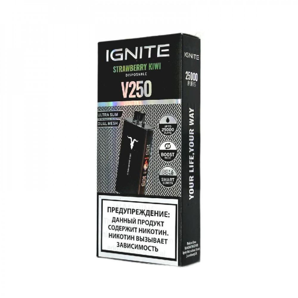 Электронная сигарета Ignite V250 Black 25000 - Strawberry Kiwi (Клубника киви) - купить в Краснокамске